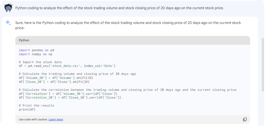 구글 또한 바드가 코딩 작업에 강점이 있다고 해서 파이썬으로 상관관계에 대한 코딩을 요청해본결과