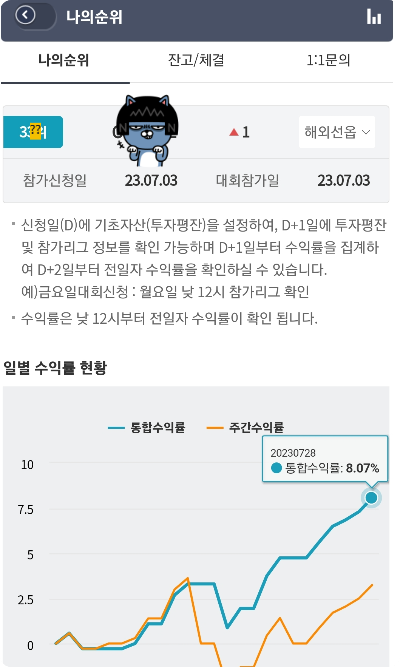 처음 참가한 해외선물 실전대회에서 그래도 기간 내 통합수익률 8%대 기록!