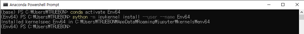 Anaconda Powershell Prompt 실행 후 다음과 같은 절차에 따라 수행하면 OK