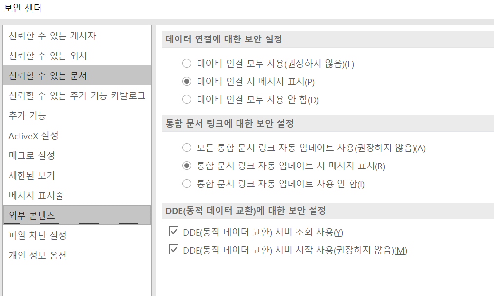 5. 엑셀오류는 권한 및 보안설정의 문제가 대부분인 것 같다.