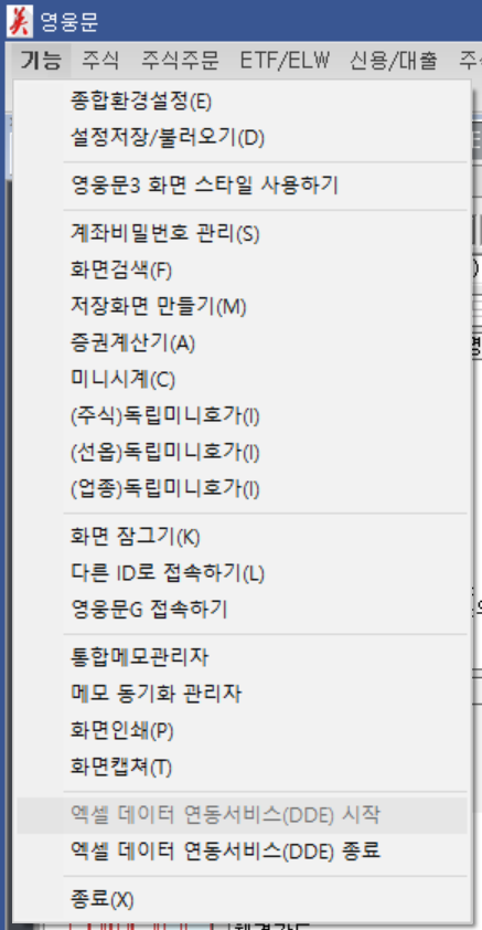 키움증권에서 제공하는 OPEN API 이용해서 데이터를 실시간으로 데이터를 보는 것을 파이썬으로 구현할까 했는데 그것보다 더 간단한 방법, 증권사 HTS에서 제공하는 데이터 DDE연동하기 기능이 생각났다.