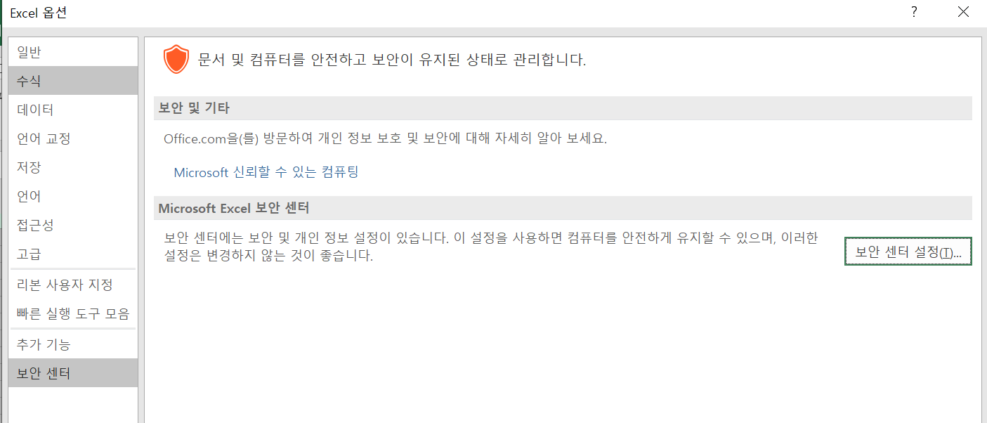 5-1 : 보안설정 : 엑셀메뉴에서 파일 -옵션 보안센터설정