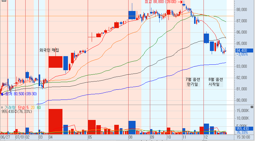 덕분에 우리나라 콜옵션장이 펼쳐지며 7월 물 만기물이 마무리되었다.