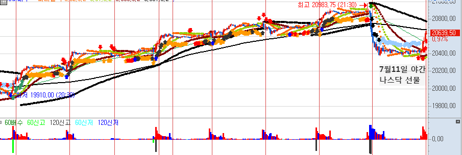 7월 옵션 만기일장이 끝난 그날 밤 열린 미국 나스닥 선물은 수익실현과 ,