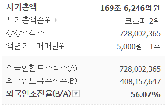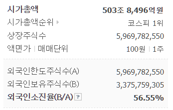 참고로 삼성전자 외국인 한도율이 궁금해져서 찾아보니 100%에 56%
