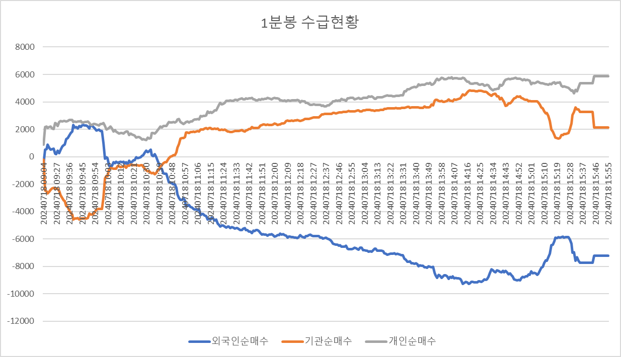 참고로 2024.7.18일 1분 별 지수선물 수급현황을 보면