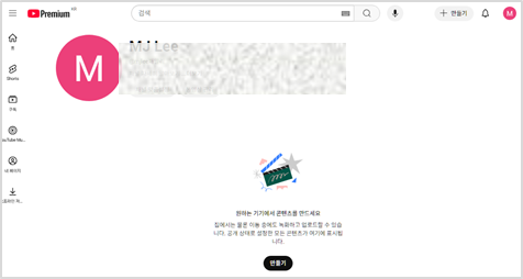 동영상을 공유할 방법으로 유튜브가 좋을 것 같아 오늘 유튜브 계정을 만들었다.