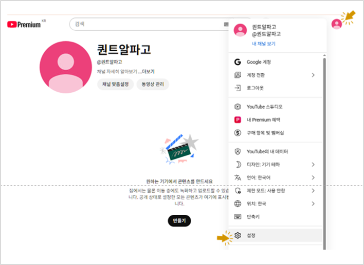 2. 유튜브 개인계정채널과 브랜드계정채널 만들기