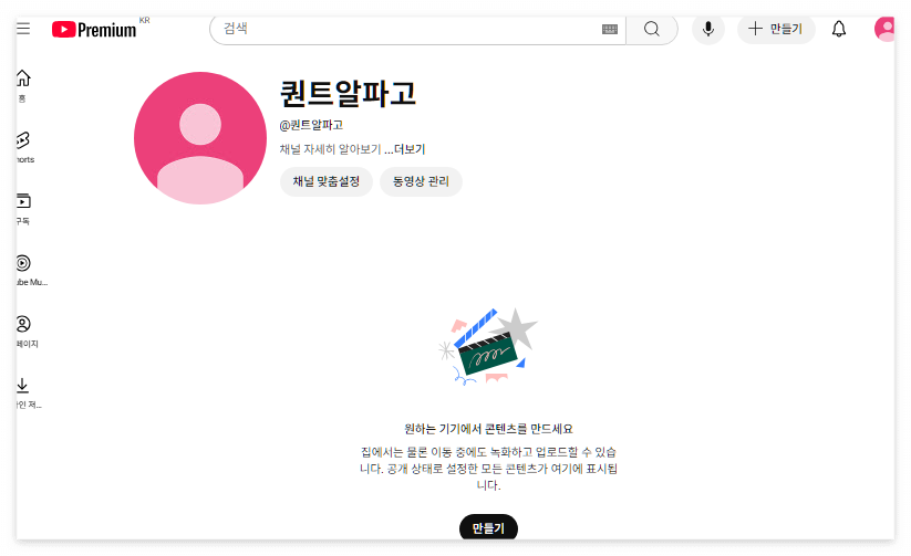 동영상을 공유할 방법으로 유튜브가 좋을 것 같아 오늘 유튜브 계정을 만들었다.