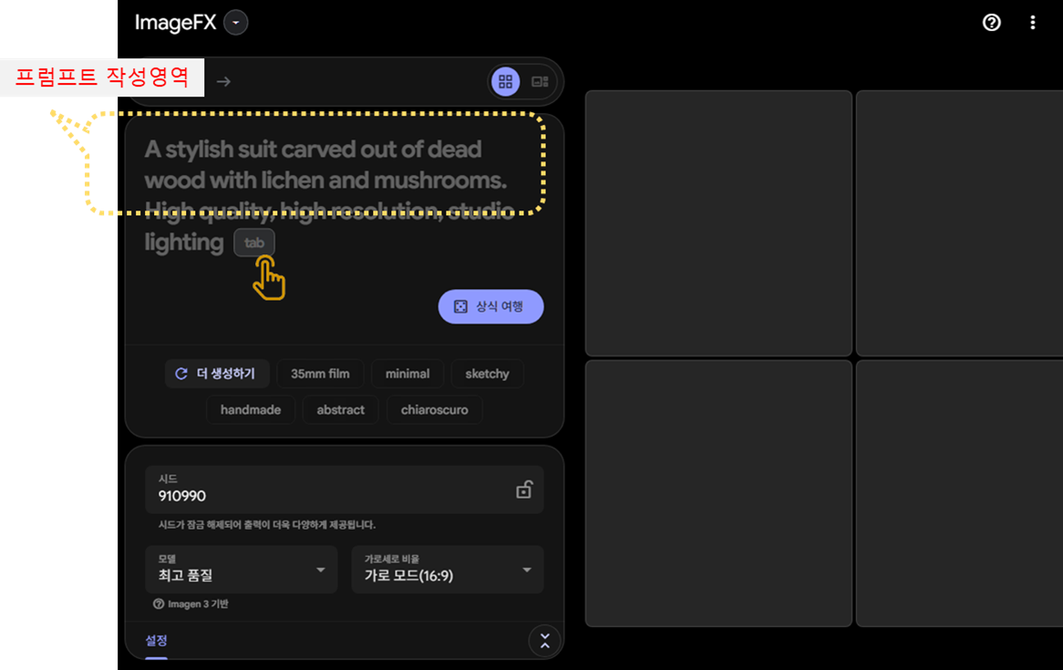 - 웹 브라우저에서 labs.google/fx/tools/image-fx 에 접속