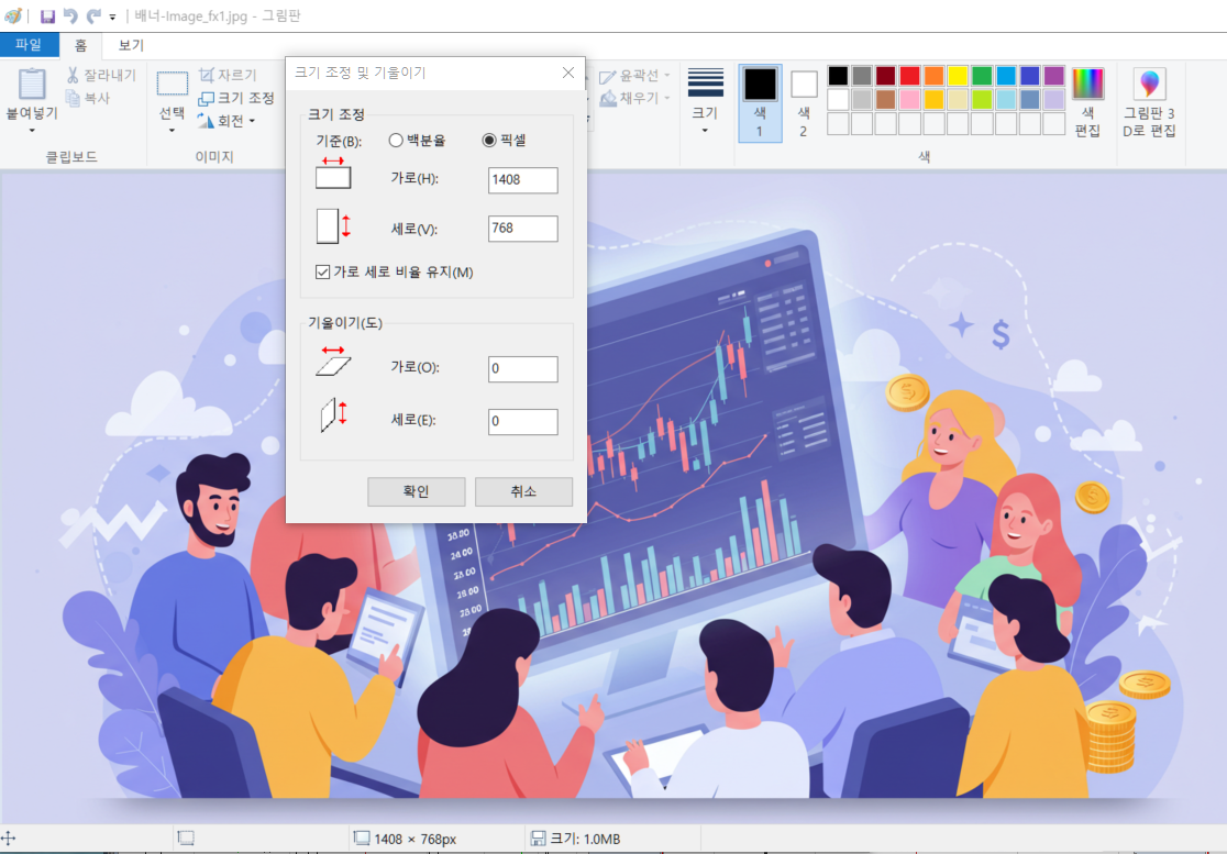 그림판을 이용한 이미지 사이즈 픽셀 조정