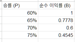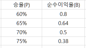 이번에 적용한 매매방식으로 켈리의 법칙을 적용하려면