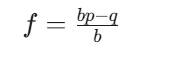 f: 최적의 베팅 비율 (자산의 몇 퍼센트를 베팅할 것인가) b: 승리 시 얻게 되는 배당률 (베팅금액 대비 순수익의 비율) p: 승리할 확률 q: 패배 확률 (q=1−p) |