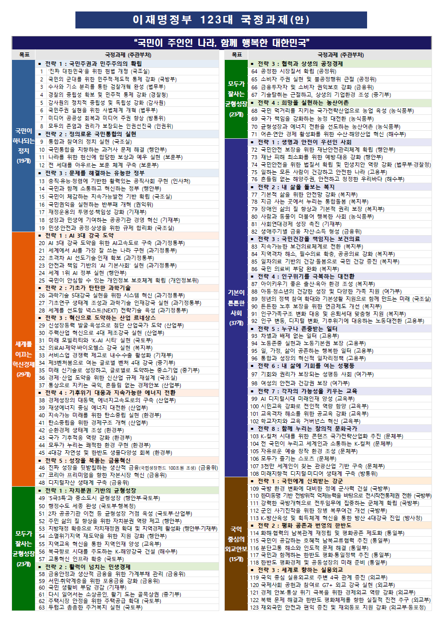 국정운영 5개년 계획(안)-123대 국정과제 목록