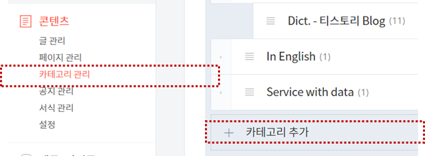 1) 블로그에 작성할 내용들을 분류하기 위한 카테고리를 작성