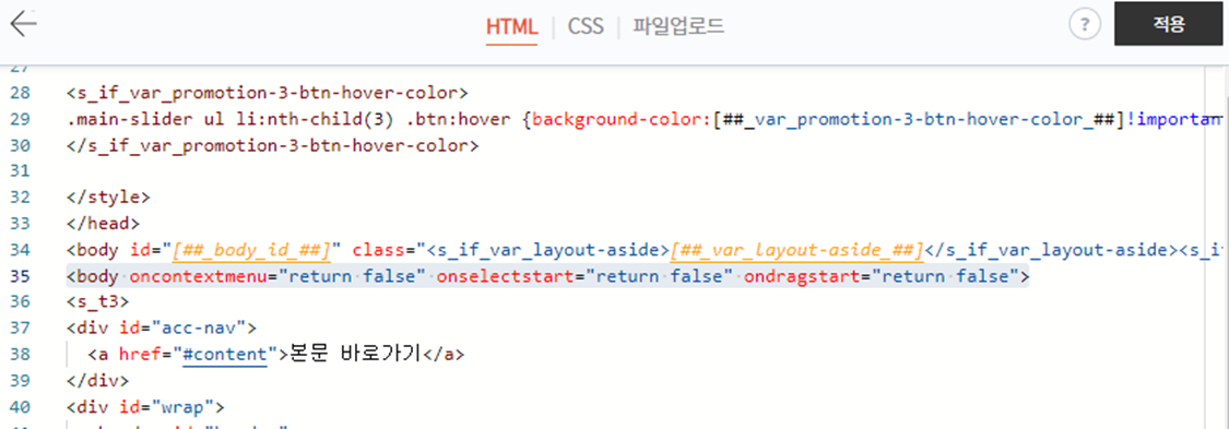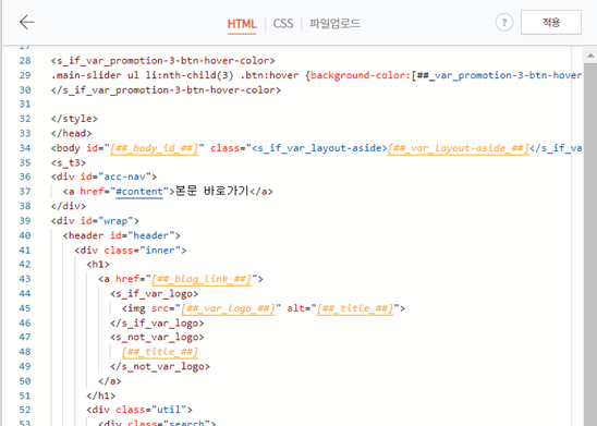 다음은 스킨편집 시 나오는 소스 원본입니다