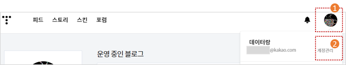 1. 상단 우측 현재 티스토리 파비콘을 클릭하고