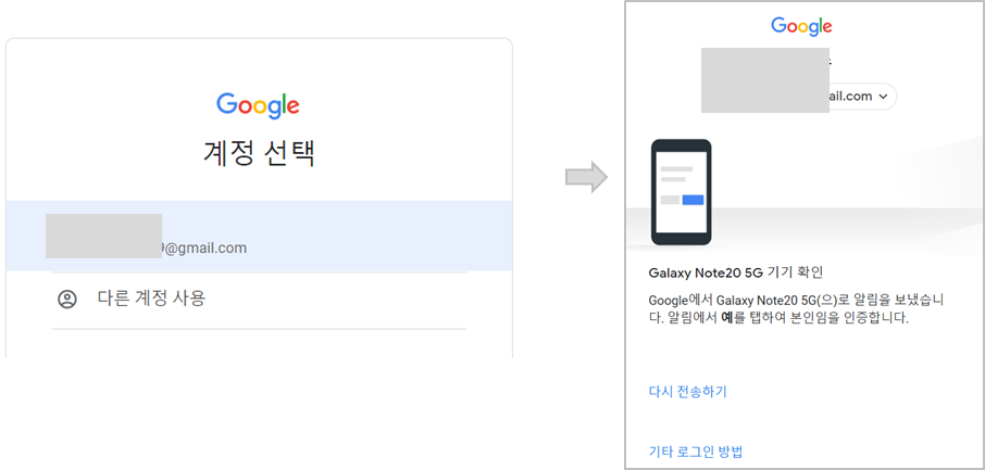3. 구글 계정 중에서 계정을 선택 -> 보인 인증 절차