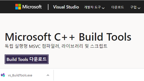 윈도우를 사용하는 경우 비주얼 스튜디오나 등의 컴파일러가 설치되어 있지 않다면 위처럼 오류발생